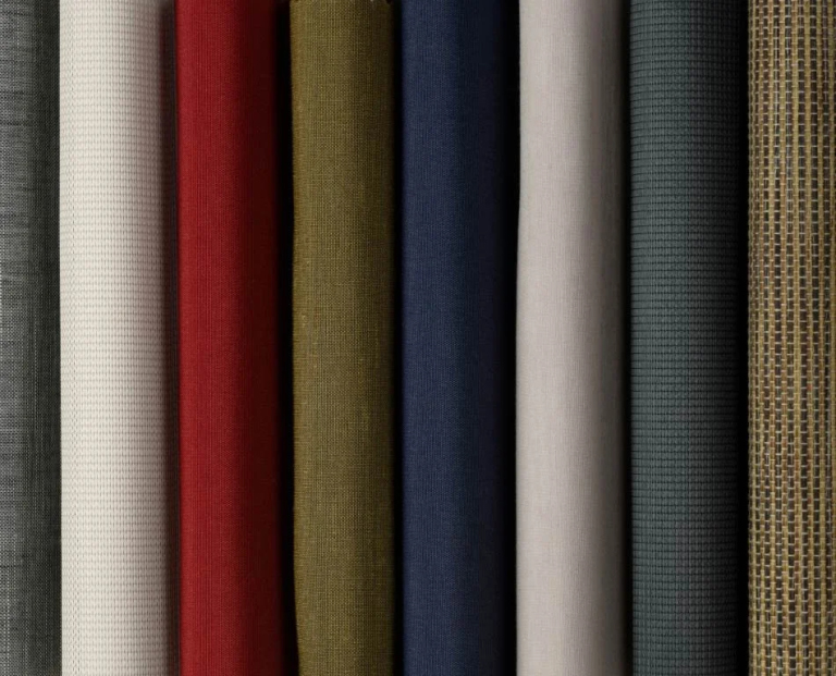 Motorized shades come in a variety of fabrics, colors, and opacities.